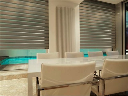 - tkanina screen fiberglass za notranji rolo je v osnovi izdelana iz steklenih vlaken in ima lastnost da večino sončnih žarkov reflektirajo. En del ga vpijejo in se s tem segreva, medtem ko del ki ga prepušča spremeni v difuzno svetlobo, ki onemogoča bleščanje